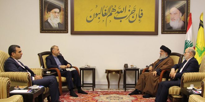 بحث الأمين العام لحزب الله السيد حسن نصرالله مع وزير الخارجية الإيراني حسين أمير عبد اللهيان آخر التطورات في فلسطين ولبنان والمنطقة والاحتمالات القائمة حول مسار الأحداث.