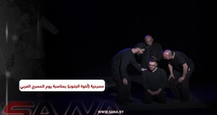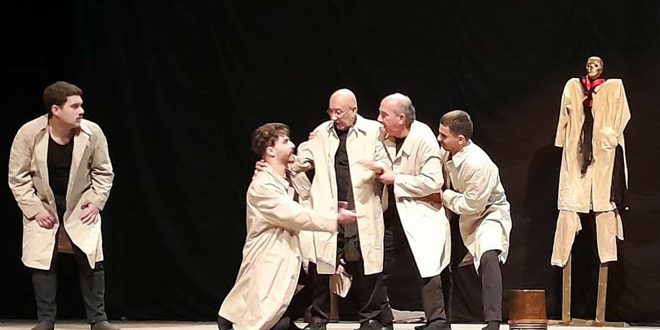 قدمت فرقة نقابة الفنانين بحمص اليوم عرضها المسرحي “أخوة الجنون” تأليف وإخراج زيناتي قدسية على مسرح قصر الثقافة بحمص.