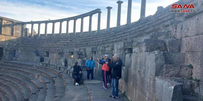 زارت مدينة بصرى الشام في محافظة درعا اليوم مجموعة سياحية لبنانية من جمعية حماية التراث المادي، تضم أطباء وفنانين ومهندسين وطلاب جامعة.