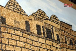 صور بصرية حول المعالم والأوابد الأثرية السورية يبدع في تشكيلها الحرفي يسار الحبش، باستخدام بذور الزيتون وقطع الخشب، مجسداً عبر لوحاته التراث والتاريخ السوري بعراقته وغناه.