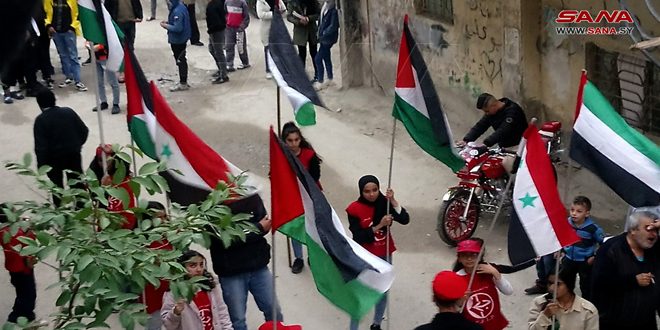 ووجه أمين سر منطقة اللاذقية للجبهة الشعبية لتحرير فلسطين رباح طبيل في كلمة فصائل المقاومة الفلسطينية ولواء القدس في اللاذقية التحية لشهداء الأقصى وأهاليهم مشيرا إلى أن الانتصارات التي بدأتها المقاومة الفلسطينية في غزة أثبتت أن الإرادة أقوى من أسلحة الكيان الغاصب.