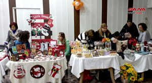 وفي حلب افتتح ضمن فعاليات الحملة اليوم بازار خيري، بمشاركة 17 سيدةً عاملةً، قدمن منتجات يدويةً مختلفةً من الحلويات والأطعمة والملبوسات الصوفية والمطرزات وزينة عيد الميلاد.