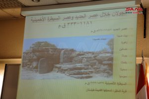 الدكتورة كاميليا أبو جبل أستاذة التاريخ الحديث والمعاصر في جامعة دمشق ركزت في مداخلتها على الانتهاكات الإسرائيلية لآثار الجولان ومحاولات تشويه الإرث الحضاري منذ عام 1967.