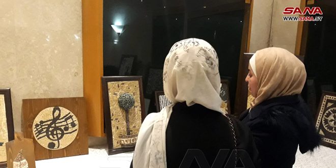 حلب-سانا افتتحت اليوم فعاليات معرض تمكين المرأة لصناعة الفسيفساء، بمشاركة 40 لوحةً و30 منتجاً للنول