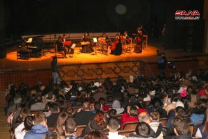 الحفل الذي حمل عنوان “عالعين يا ملاية ” أقيم بالتعاون بين مديرية المسارح والموسيقى والمسرح القومي باللاذقية، وأحيا فيه 88 طالباً وطالبة من المعهد مجموعة منوعة من الأغاني التراثية الفلسطينية والسورية افتتحها بمقطوعة موسيقية سماعي بيات من تأليف قائد الفرقة الموسيقية في المعهد زياد عباس، لينقل بعدها الجمهور الكبير الذي غصت به المدرجات في تحية إلى القدس مدينة السلام ورائعة السيدة فيروز “زهرة المدائن” كلمات وألحان الأخوين رحباني.