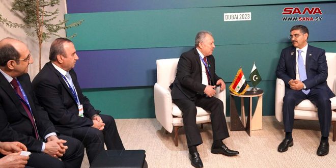 التقى رئيس مجلس الوزراء المهندس حسين عرنوس اليوم مع نظيره الباكستاني أنوار الحق كاكر، وذلك على هامش أعمال القمة العالمية للعمل المناخي المنعقدة بدبي ضمن الدورة الثامنة والعشرين لمؤتمر الأطراف في اتفاقية الأمم المتحدة الإطارية لتغير المناخ (كوب 28).