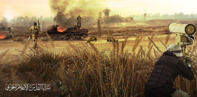 – المقاومة الفلسطينية: استهدف مقاتلونا قوة صهيونية خاصة متحصنة داخل مبنى في بيت حانون بقذيفة (TBG) مضادة للتحصينات واشتبكوا معها بالأسلحة الرشاشة وقضوا على عدد من جنودها.