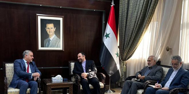 بحث وزير المالية الدكتور كنان ياغي مع سفير الجمهورية الإسلامية الإيرانية بدمشق حسين أكبري اليوم سبل تعزيز التعاون بين البلدين في المجالات المالية والاقتصادية والتأمين.