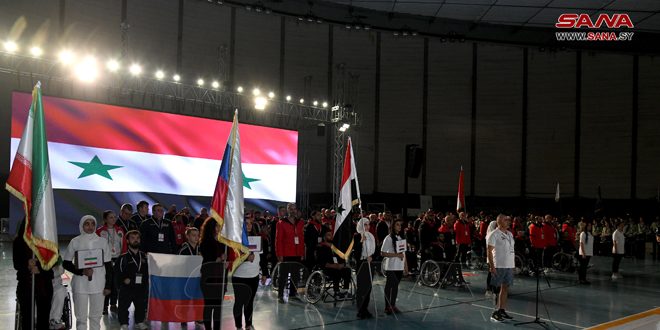 وشهد حفل الافتتاح الذي أقيم في مدينة تشرين الرياضية لوحةً فنيةً بعنوان “تحية إلى فلسطين”، جسدت صمود الشعب الفلسطيني وتشبثه بأرضه، تلاها عرض فيلم وثائقي عن إنجازات أبطال الرياضات الخاصة في البطولات الخارجية، ومسيرة الجرحى الرياضيين وإنجازاتهم.