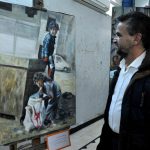 وجسدت الخريجة إلهام الشرارة من خلال لوحاتها المعاناة التي نشاهدها ونلمسها من بؤس وفقر وشقاء وانتجته سنوات الحرب الإرهابية القاسية على المجتمع.