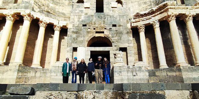 زارت مجموعة سياحية من الولايات المتحدة وبلغاريا تضم أطباء ومعالجين ومتقاعدين وأصحاب مكاتب سياحية مدينة بصرى الشام، واطلعت على المعالم الأثرية والعمرانية فيها.