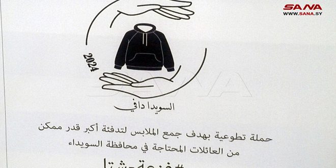 بمشاركة فعاليات مجتمعية ومبادرات تطوعية أطلق مركز الشباب في فرع جمعية تنظيم الأسرة بالسويداء اليوم حملة ” السويداء دافي 2024″ لجمع الملابس الشتوية وتوزيعها على الأسر المحتاجة.