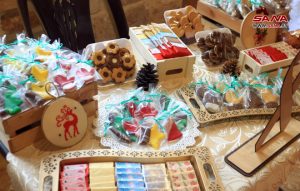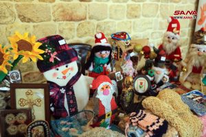 وضم المعرض أنواع الرسم على الزجاج وأكسسوارات الزينة وتصاميم الألبسة والايتامين والكروشيه بالإضافة إلى مأكولات عيد الميلاد والمأكولات الشرقية التقليدية.
