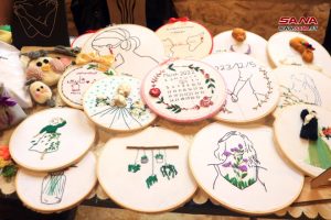 ومن المشاركات ريم كاسوحة التي تعمل على نحت نماذج من الصلصال والرسم عن طريق الليزر وصناعة الهدايا وتزيينها للمناسبات حيث قالت: إنها وجدت في المشاركة بالبازار فرصة لدعم المرأة وتشجيعها لتقف جنباً إلى جنب مع الرجل، والعمل على تأمين جزء من مستلزمات الحياة.
