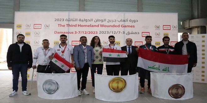 أضاف منتخب سورية لرصيده عشرين ميدالية متنوعة 4 ذهبيات و8 فضيات و8 برونزيات من منافسات دورة ألعاب جريح الوطن الدولية الثالثة التي يقيمها مشروع جريح الوطن بالتعاون مع الاتحاد الرياضي العام في مدينتي تشرين والفيحاء الرياضيتين بدمشق.