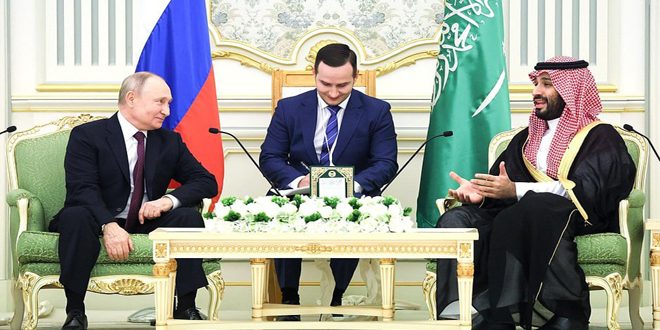 وأشار الرئيس الروسي إلى أن الاتحاد السوفييتي كان من أوائل الدول التي اعترفت بالمملكة العربية السعودية كدولة مستقلة، وأضاف بوتين: “على مدى السنوات السبع الماضية اكتسبت العلاقات زخماً، ووصلت إلى مستوى لم يسبق له مثيل”، لافتاً إلى أن البلدين يتمتعان بعلاقات مستقرة في مجال التعاون السياسي والاقتصادي والإنساني.