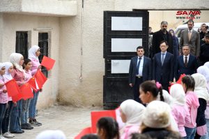 افتتحت وزارة التربية اليوم مدرسة أحمد منيف العائدي في منطقة القابون بدمشق بعد إعادة ترميمها وتجهيز مستلزماتها بمنحة مقدمة من الصين.
