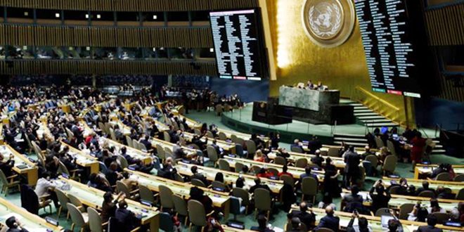 اعتمدت الجمعية العامة للأمم المتحدة بأغلبية ساحقة اليوم 5 قرارات لصالح القضية الفلسطينية.