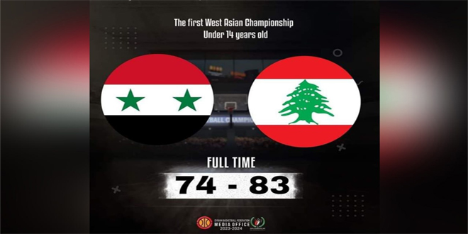 خسر منتخب سورية لكرة السلة للناشئين أمام نظيره اللبناني بنتيجة 83-74 نقطة في الجولة الثانية من بطولة غرب آسيا المقامة في لبنان بمشاركة منتخب العراق أيضاً.