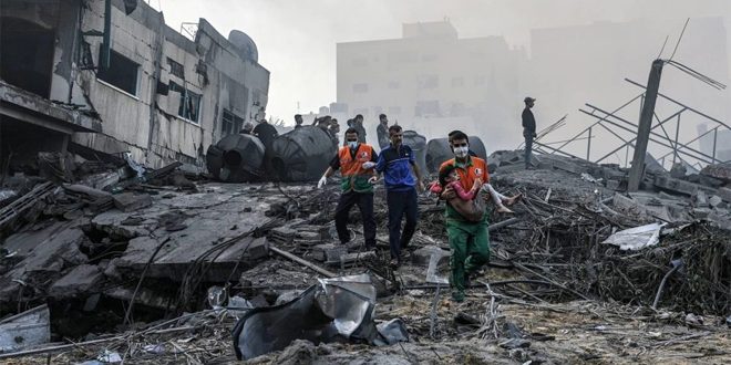 وقال المكتب في بيان اليوم: “إن جيش الاحتلال “الإسرائيلي يواصل منذ 63 يوماً حرب الإبادة الجماعية الشاملة ضد الشعب الفلسطيني في قطاع غزة والقتل الوحشي للمدنيين والأطفال والنساء، بقصف للمنازل الآمنة وهدمها بدون سابق إنذار بالطائرات الحربية الإسرائيلية والأمريكية وبالصواريخ والقنابل العملاقة حيث أصبح كل متر في قطاع غزة تحت الاستهداف وتحت القصف المباشر”.