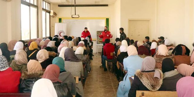نفذ متطوعو الهلال الأحمر العربي السوري، بالتعاون مع فرع جامعة دمشق بدرعا، وتحت شعار (لا تلمس…لا تقترب…بلغ فوراً) جلسات توعوية لطلبة الجامعة حول مخاطر مخلفات الحرب والأضرار الناجمة عنها.