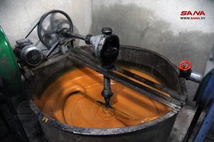 يتم تسخين الجلاب فيها مع التحريك المستمر حتى يجهز الدبس بعدها ينقل إلى أوعية أخرى تدعى “الضاربات “لتبريده وزيادة تركيزه، ومن ثم يوزع الدبس ضمن علب بأوزان مختلفة، مشيرا إلى أن الدبس يصنع جامداً أو سائلاً وفق الراغبين بالشراء”.