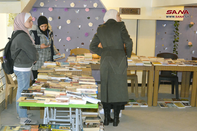 وتستمر فعاليات معرض الكتاب الخيري الأول لثلاثة أيام في صالة مكتبة جود بحي الملعب بحمص.