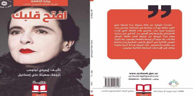صدر حديثاً عن الهيئة العامة السورية للكتاب في وزارة الثقافة الرواية المترجمة عن الفرنسية “افتح قلبك” للمترجمة سهيلة إسماعيل، وهي ثالث رواية مترجمة لها.