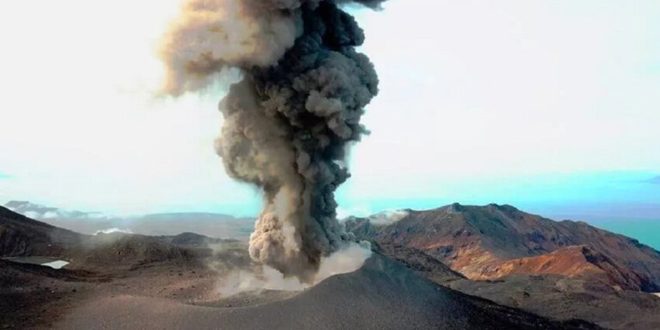 ثار بركان إيبيكو الواقع في سلسلة جبال فيرنادسكي على جزيرة باراموشير في المحيط الهادئ شرق روسيا قاذفاً عموداً من الرماد البركاني ارتفاعه 2.5 كلم.