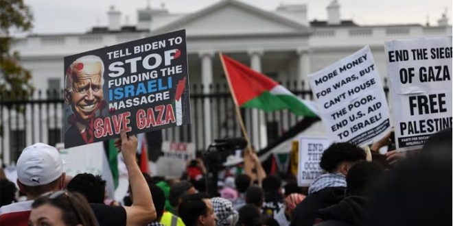 أفادت صحيفة (ذا هيل) الأمريكية بأن الولايات المتحدة شهدت خلال الأسابيع الأخيرة مظاهرات لاحقت الرئيس جو بايدن في جولاته، مطالبة بوقف العدوان الوحشي الإسرائيلي على قطاع غزة، ومتهمة بايدن بأنه شريك في الإبادة الجماعية التي يشهدها القطاع.