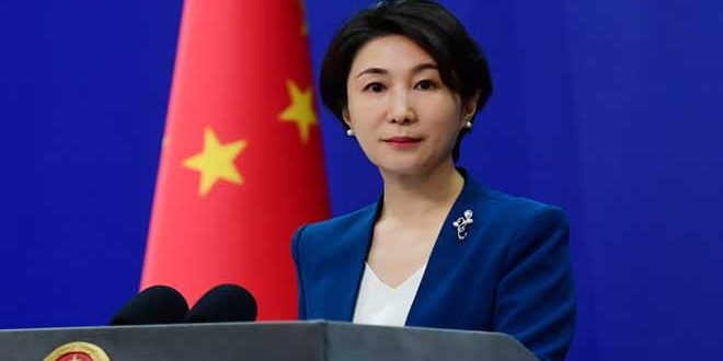 وأشارت إلى أن الصين ستواصل العمل مع الأطراف المعنية للقيام بدور إيجابي وبناء لتحقيق إقامة الدولة الفلسطينية.