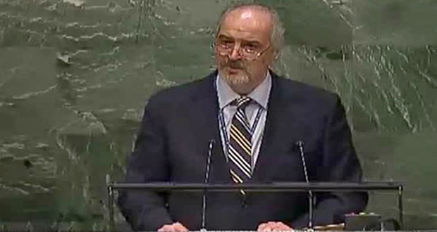 وقال الجعفري في بيان أدلى به اليوم خلال جلسة النقاش العام لمؤتمر مراجعة معاهدة عدم الانتشار لعام 2015 في مقر الأمم المتحدة بنيويورك إن سورية كانت سباقة في الدعوة لجعل منطقة الشرق الأوسط منطقة خالية من الأسلحة النووية وكل أسلحة الدمار الشامل الأخرى حيث قدمت أثناء عضويتها في مجلس الأمن مشروع قرار أمام مجلس الأمن بتاريخ 29 كانون الأول 2003 لإخلاء منطقة الشرق الأوسط من تلك الأسلحة الفتاكة إلا أن مبادرتها تلك لقيت معارضة من قبل دولة نافذة في المجلس بهدف إجهاضها وذلك في محاولة من تلك الدولة لحماية “إسرائيل” في تنصلها من التزاماتها الدولية في هذا الخصوص.
