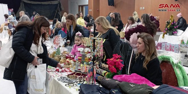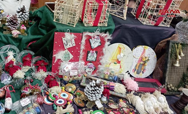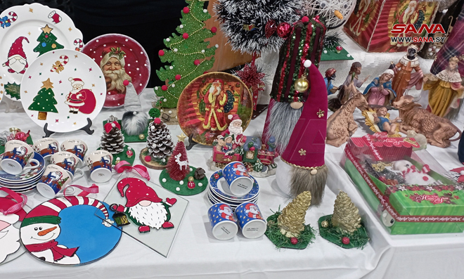 وأوضح الأب جبرائيل عازار الخوري في كنيسة النبي إلياس للروم الأرثوذكس في تصريح لمراسل سانا أن المعرض يحتوي أعمالاً يدوية وصناعات تقليدية وزينة عيد الميلاد أبدعتها أيادي السيدات، وتباع بأسعار مقبولة، مؤكداً أن المعرض يشكل رسالة سلام من حلب إلى فلسطين وبيت لحم وأبناء الشعب الفلسطيني في غزة، داعياً الله أن يعم السلام أرجاء العالم.