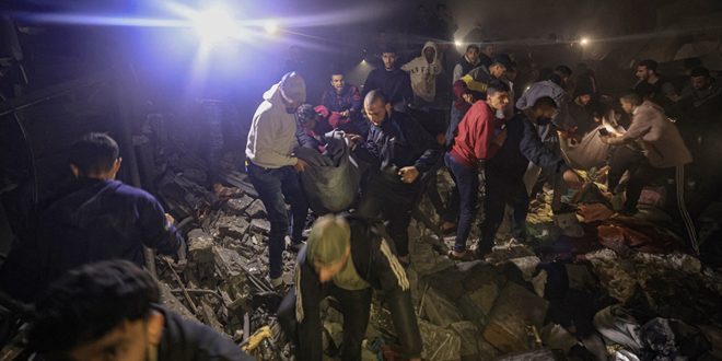 كما شن طيران الاحتلال سلسلة غارات وقصف بالصواريخ مربعاً سكنياً في مدينة رفح ومنطقة الكتيبة في خان يونس جنوب القطاع، ما أسفر عن وقوع العشرات من الشهداء والجرحى، فضلاً عن قصف أحياء سكنية في دير البلح والنصيرات وجباليا وسط وشمال قطاع غزة.