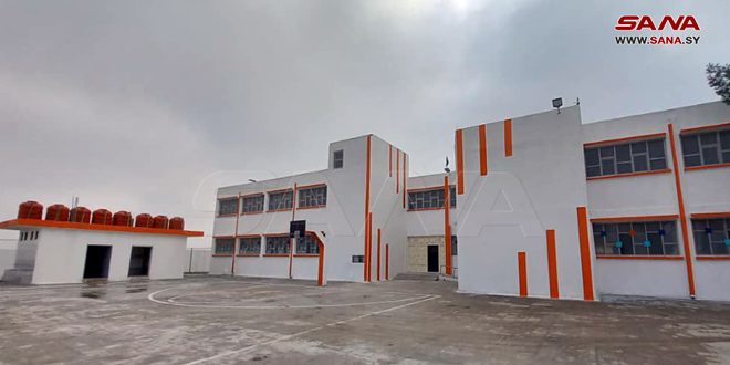 وأضافت صورخان: إنه تم حفر بئر وتزويدها بألواح طاقة شمسية وتركيب خزانات مياه جديدة، وتقديم مقاعد مدرسية وتزويد غرف الإدارة بأثاث جديد، مشيرة إلى أن المدرسة وضعت بالخدمة، ويبلغ عدد تلاميذها 366 تلميذاً وتلميذة من الصف الخامس حتى الصف الثالث الإعدادي.