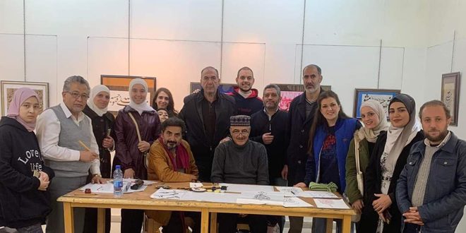 اختتمت جمعية بيت الخط العربي والفنون بالتعاون مع مديرية ثقافة دمشق فعاليات مهرجان “محبة قلم 4” بورشة تفاعلية في خط الديواني الجلي بإشراف الخطاط المعلم عدنان شيخ عثمان.