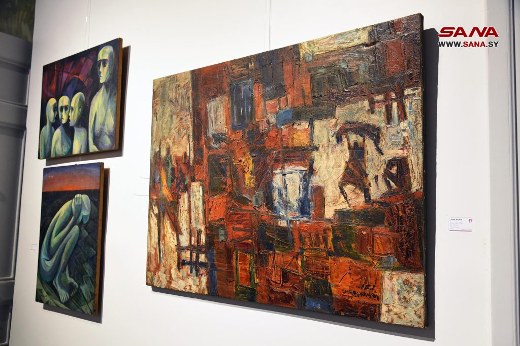 الأعمال المعروضة حملت تواقيع كل من الفنانين ميشيل كرشه وإقبال قارصلي وممدوح قشلان ونعيم اسماعيل وبرهان كركوتلي وعبد الحي مسلم زرارة وخزيمة علواني وعبد المنان شما ونذير نبعة ومصطفى الحلاج وأسماء فيومي وبهاء الدين البخاري ومحمد الوهيبي وعلي الكفري وعصام بدر ومحمود شاهين وعمر حمدي وزكي سلام ونصوح زغلولة ونزار صابور وعادل كامل.