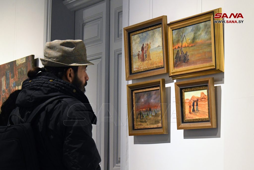 روى 41 عملا فنيا بين لوحة ومنحوتة مشاهد من فلسطين مع التركيز على نضال شعبها في سبيل حريته وتحرير أرضه وذلك في معرض بعنوان “أيقونة الأرض” أقيم مساء اليوم ضمن فعاليات أيام الفن التشكيلي السوري.