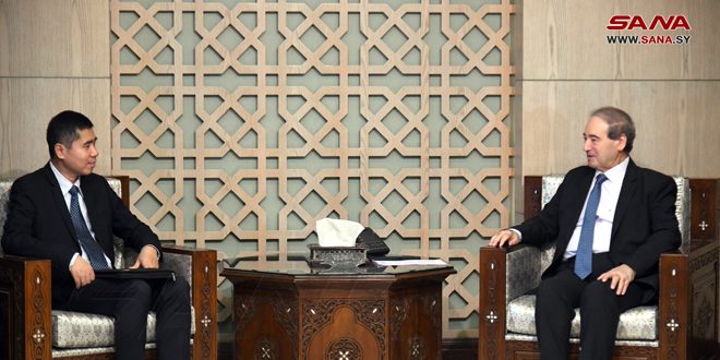 استقبل وزير الخارجية والمغتربين الدكتور فيصل المقداد مدير عام إدارة غرب آسيا وشمال أفريقيا في وزارة الخارجية الصينية وانغ دي والوفد المرافق خلال الزيارة التي يقوم بها وانغ لسورية وبعض دول المنطقة.