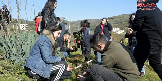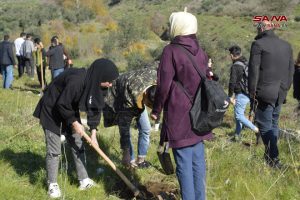 بمشاركة 160 طالباً وطالبةً من جامعتي البعث والوادي الخاصة نفذ الاتحاد الوطني لطلبة سورية حملة التشجير الوطنية في منطقتي وادي النضارة وسد المزينة في تلكلخ، والتي كان أطلقها يوم أمس بالتعاون مع وزارة الزراعة والإصلاح الزراعي تحت عنوان “غرسة خير”.