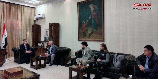 بحث وزير التربية الدكتور محمد عامر المارديني اليوم مع رئيس منظمة اتحاد العالم المسيحي ألكسي تشيركيزوف والوفد المرافق سبل تعزيز التعاون التربوي بين سورية وروسيا.