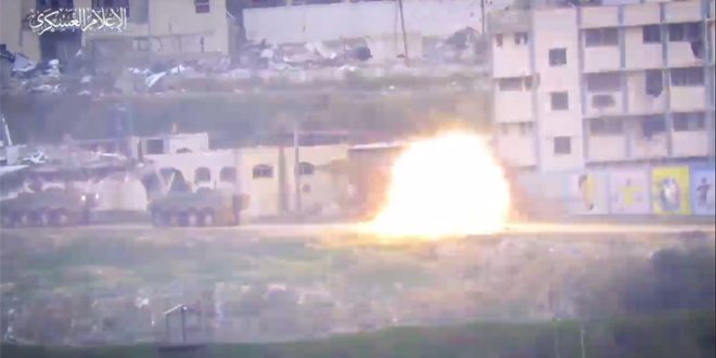 كما دمر مقاتلو المقاومة ناقلة جند للعدو وجرافة عسكرية في بيت لاهيا شمال القطاع بقذيفتي “الياسين 105″، وفجروا عدداً من العبوات المضادة للأفراد بجنود الاحتلال الذين حاولوا إنقاذ المصابين.