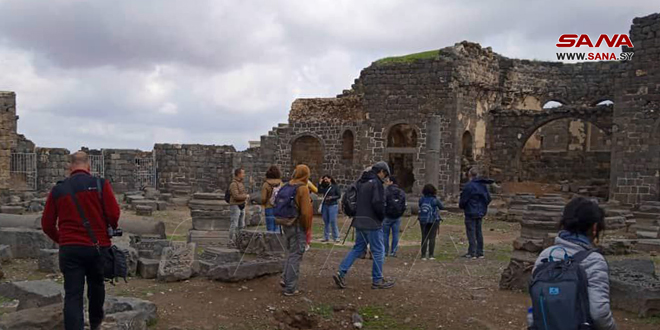 زار سياح من جنسيات عدة مدينة بصرى الشام الأثرية واطلعوا على معالمها وبنيتها المعمارية الفريدة.