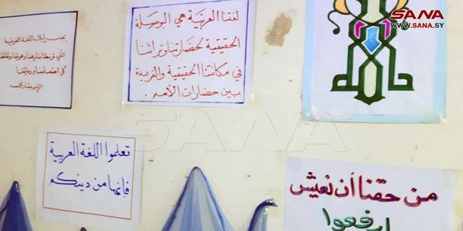 رئيسة مكتب الفنون الجميلة والمسرح في فرع الطلائع فدوى محمود أشارت إلى أن النشاط يقام بالتشاركية مع مديرية الثقافة، بمناسبة الاحتفاء باليوم العالمي للغة العربية، والأطفال المشاركون في المعرض كانوا قد شاركوا بورشة للخط العربي ورسومات وكتابات، لافتة إلى أنه يتم تدريب الأطفال الموهوبين في البداية على رسومات بخط الرقعة، ومن ثم الانتقال إلى باقي الخطوط في اللغة العربية.