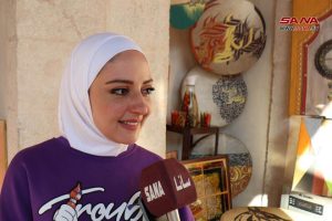 وقالت عالية الإلشي: إنها حرصت على المشاركة للترويج لمنتجاتها من مختلف أنواع منتجات الرسم على الزجاج والرسم على الدف واللوحات.