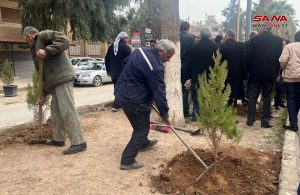 ففي دير الزور، أقامت مديرية الزراعة وبمشاركة فعاليات أهلية وشعبية احتفالية تحت شعار “غاباتنا أمانة فلنحافظ عليها”، تضمنت زراعة 3200 شجرة في موقعي مبقرة دير الزور وكلية الآداب.