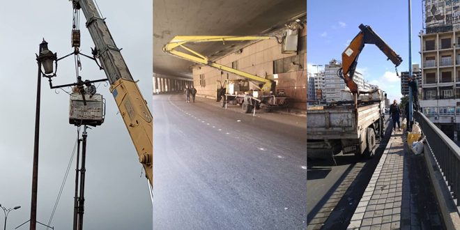 واصلت الشركة العامة لأعمال الكهرباء والاتصالات السورية للشبكات فرع دمشق أعمالها ضمن مشروع صيانة الإنارة العامة بدمشق بإشراف مديرية الإنارة والكهرباء بالمحافظة.