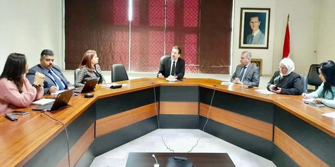 بحث وزير الشؤون الاجتماعية والعمل لؤي المنجد مع نائبة المدير القطري لبرنامج الغذاء العالمي زينب الخضري والوفد المرافق لها المواضيع المرتبطة بخبرات البرنامج بمجال دعم برامج الحماية الاجتماعية في المنطقة والعالم.