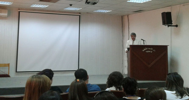 وألقى الفنان التشكيلي علي مقوص محاضرة عن حياة الفنان السوري الكبير نذير نبعة المعروف بتجربته الفنية الزاخرة شارحا شغفه بتأمل الطبيعة والتجول في البساتين منذ طفولته الأولى واكتشاف اساتذته في المدرسة لموهبته ودراسته في كلية الفنون الجميلة بالقاهرة وتأثر أعماله بالبيئة المصرية فجسد الفلاح والصعيد والعامل المصري إضافة إلى تأثره بشواطئ الفرات جراء عمله في دير الزور و التي ظهرت في أعماله كتشكيلات حملت أصالة إحساسه السوري الصادق.