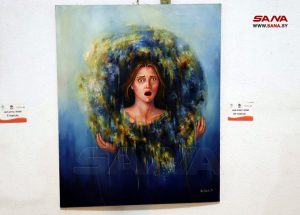 ومن المشاركات الطالبة زينة آغا التي عبرت بطريقة رمزية بخمس لوحات أظهرت من خلالها الفرح وسط الحزن، والعلاقة الجدلية بين المرأة والرجل، بالإضافة إلى المرأة والأقنعة التي تضطر إلى وضعها في الحياة.